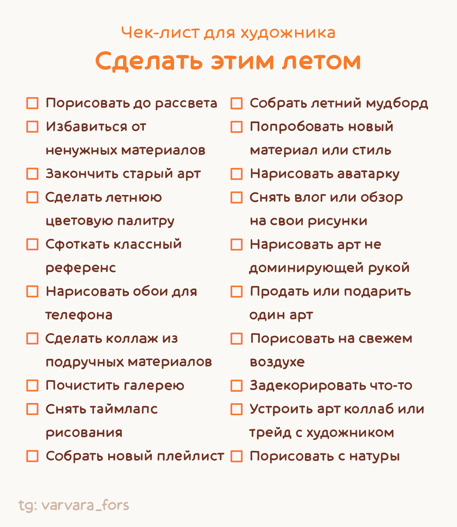 - Ориентируйтесь на тренды и сезонные события. Выкладывайте пины для них заранее. Если скоро лето, сделайте чеклист «Темы для летних артов» или нарисуйте несколько летних аутфитов для персонажей и выложите уже сейчас.