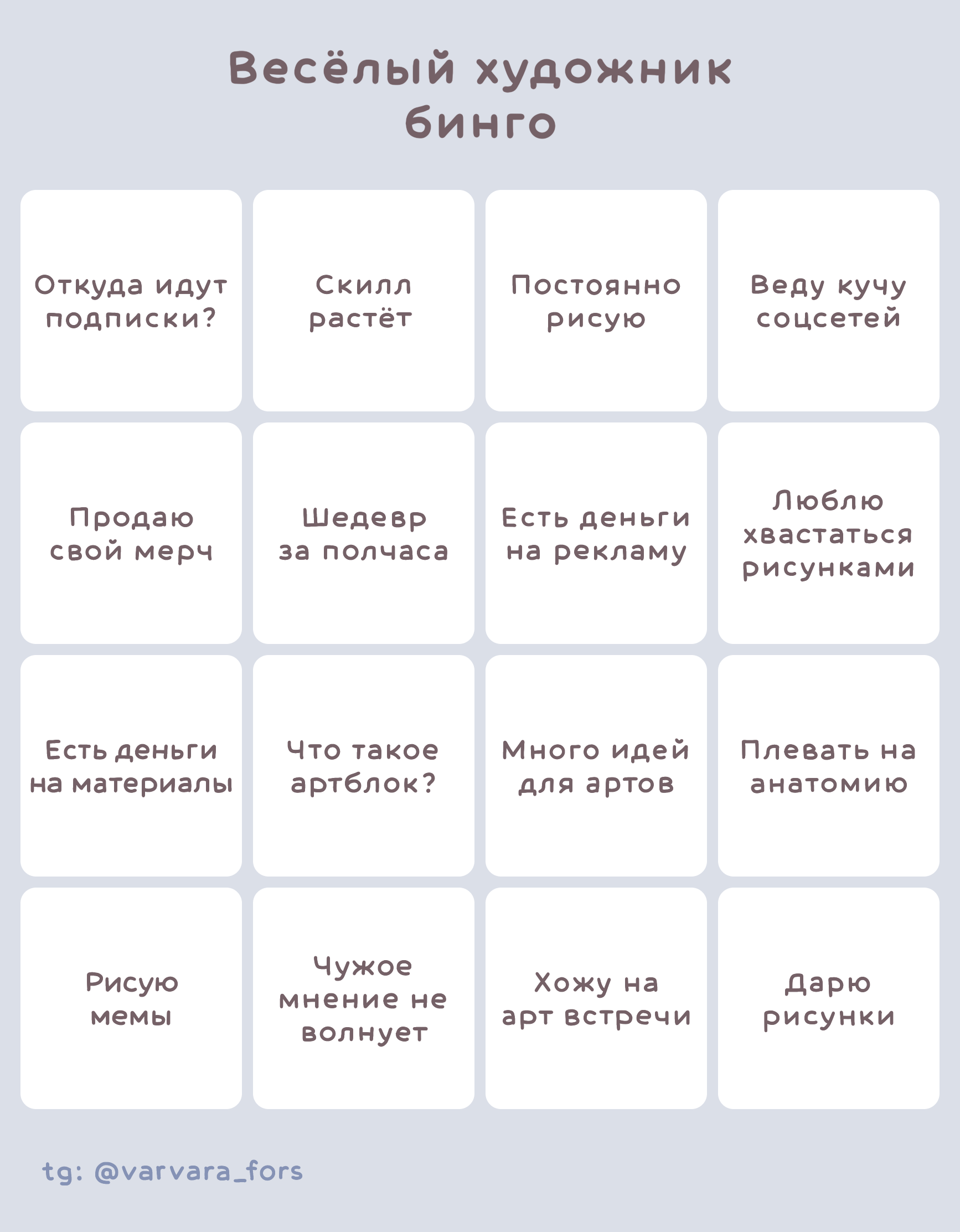 Примеры бинго для художников
